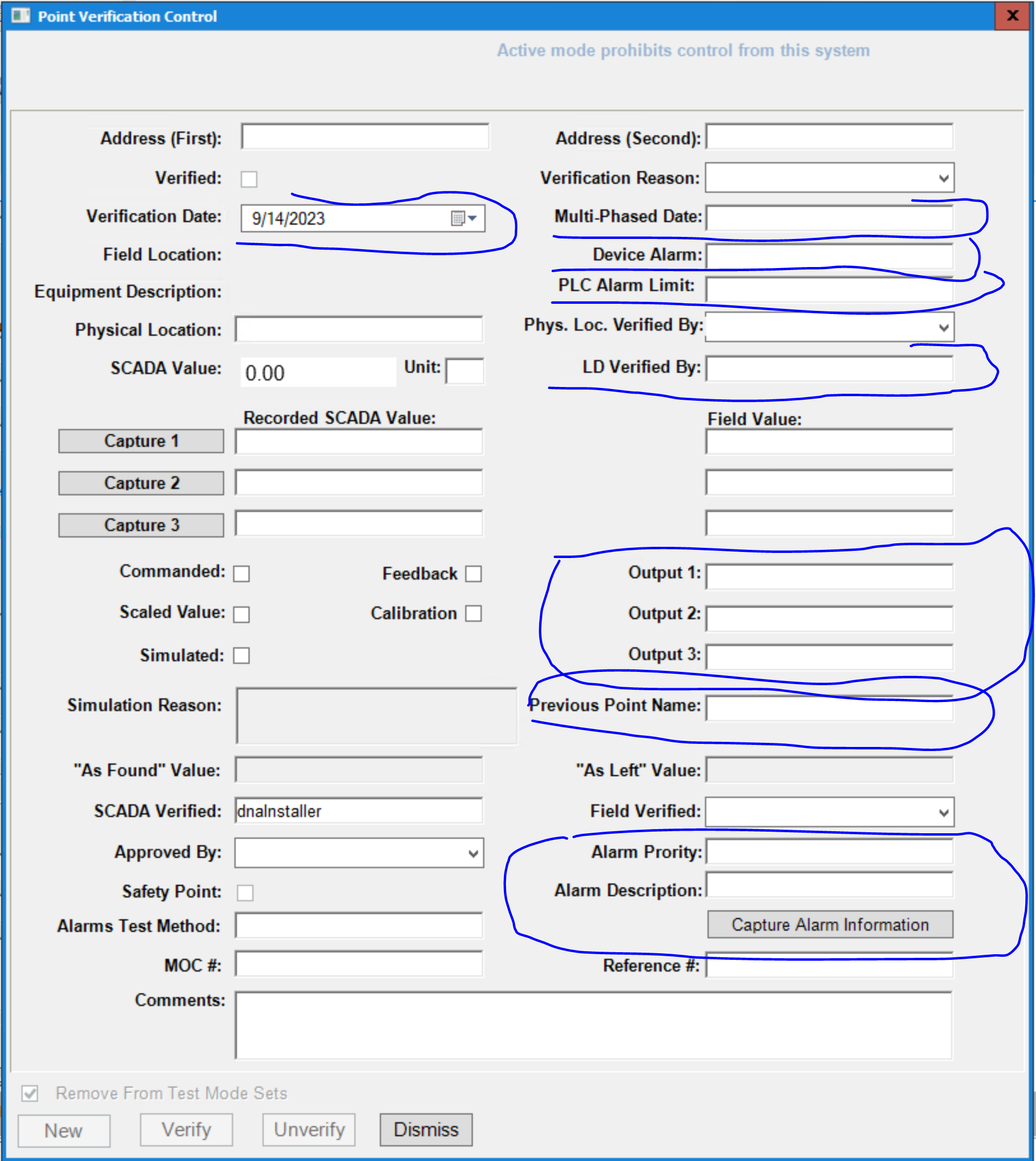 • Verification Date, currently read-only field, to be converted to a datetime picker object that defaults to current time, but allows user to modify as required.